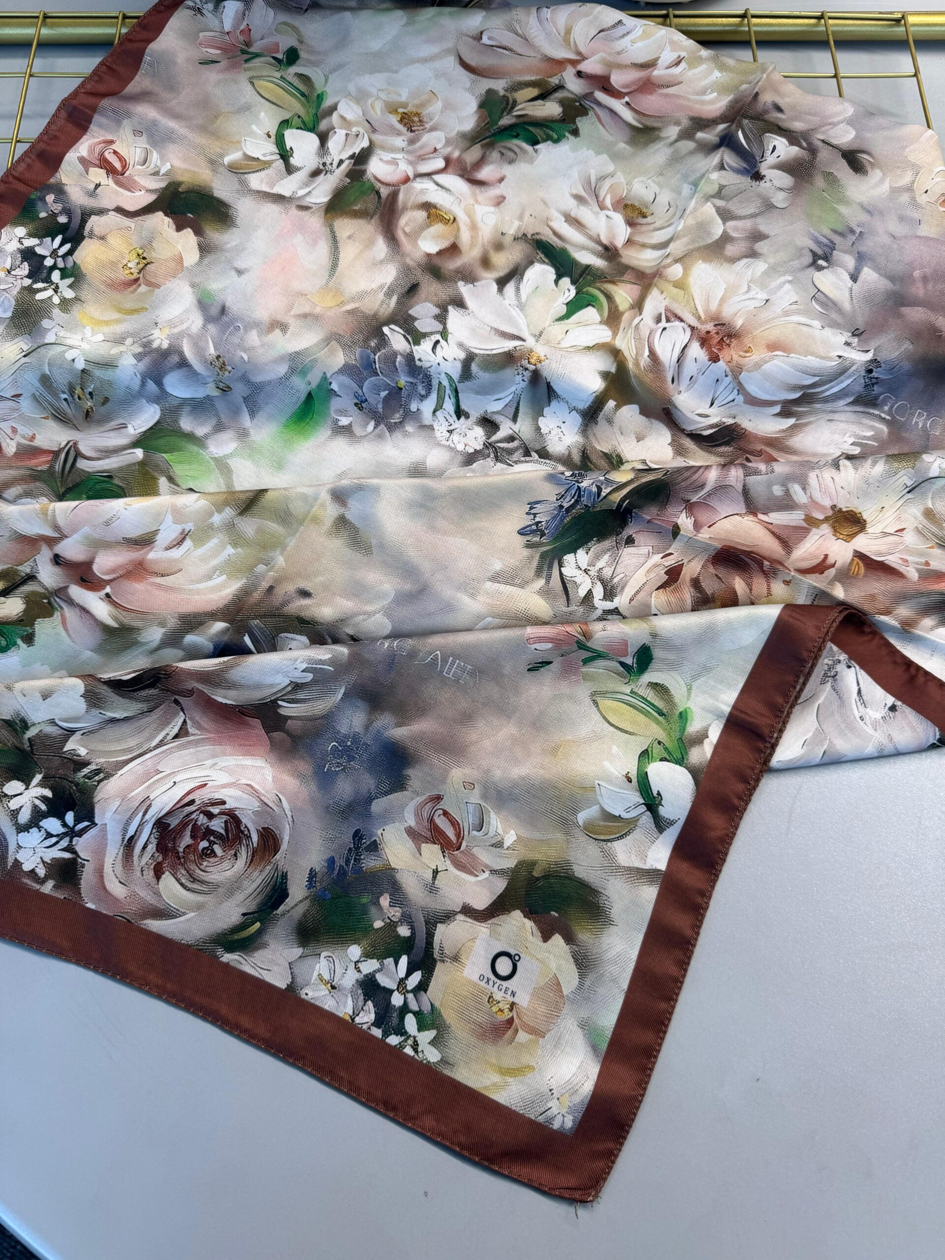 Mystic Bloom Desen Pamuk İpek Şal-Tarçın