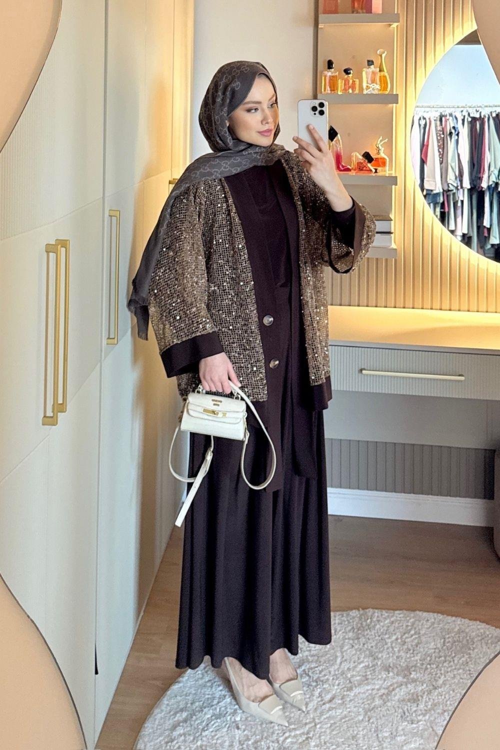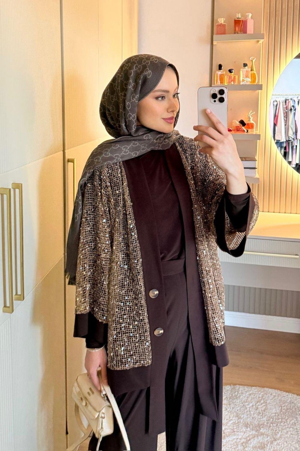 Üçlü takımdan oluşmaktadır: ceket,bluz ve pantolon.