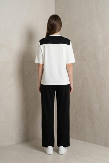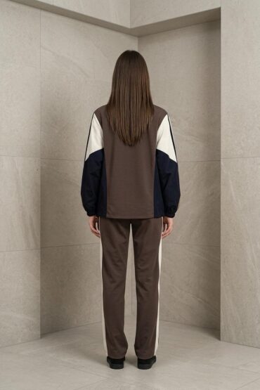 Üçlü takımdan oluşmaktadır: ceket,bluz ve pantolon.