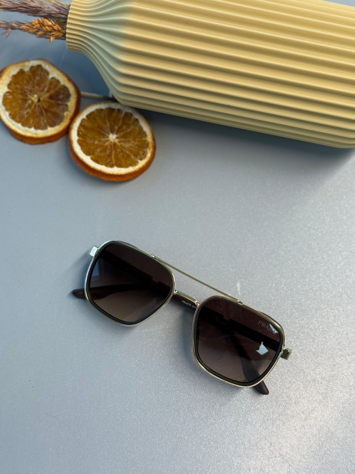 Prada’nın ikonik “enamel–inlay” detaylarını taşıyan PR 16VS modeli, zarif altın metal çerçevesi ile parlak beyaz ve kırmızı emaye sapları bir araya getiriyor. Modern dikdörtgen silueti, yüz hatlarını keskinleştirirken, premium kategori-3 gri degrade lensler %100 UV400 koruma sunar. İnce metal işçiliği ve Prada logolu sap plaketi, her açıdan lüks bir dokunuş katıyor.