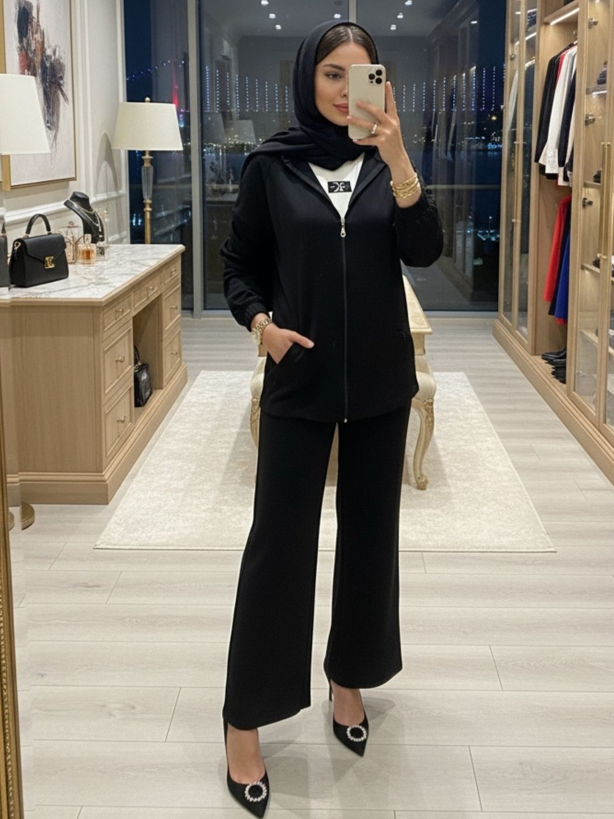 Premium Cep Fermuarlı Oysho İkili Takım TK100300 – Siyah