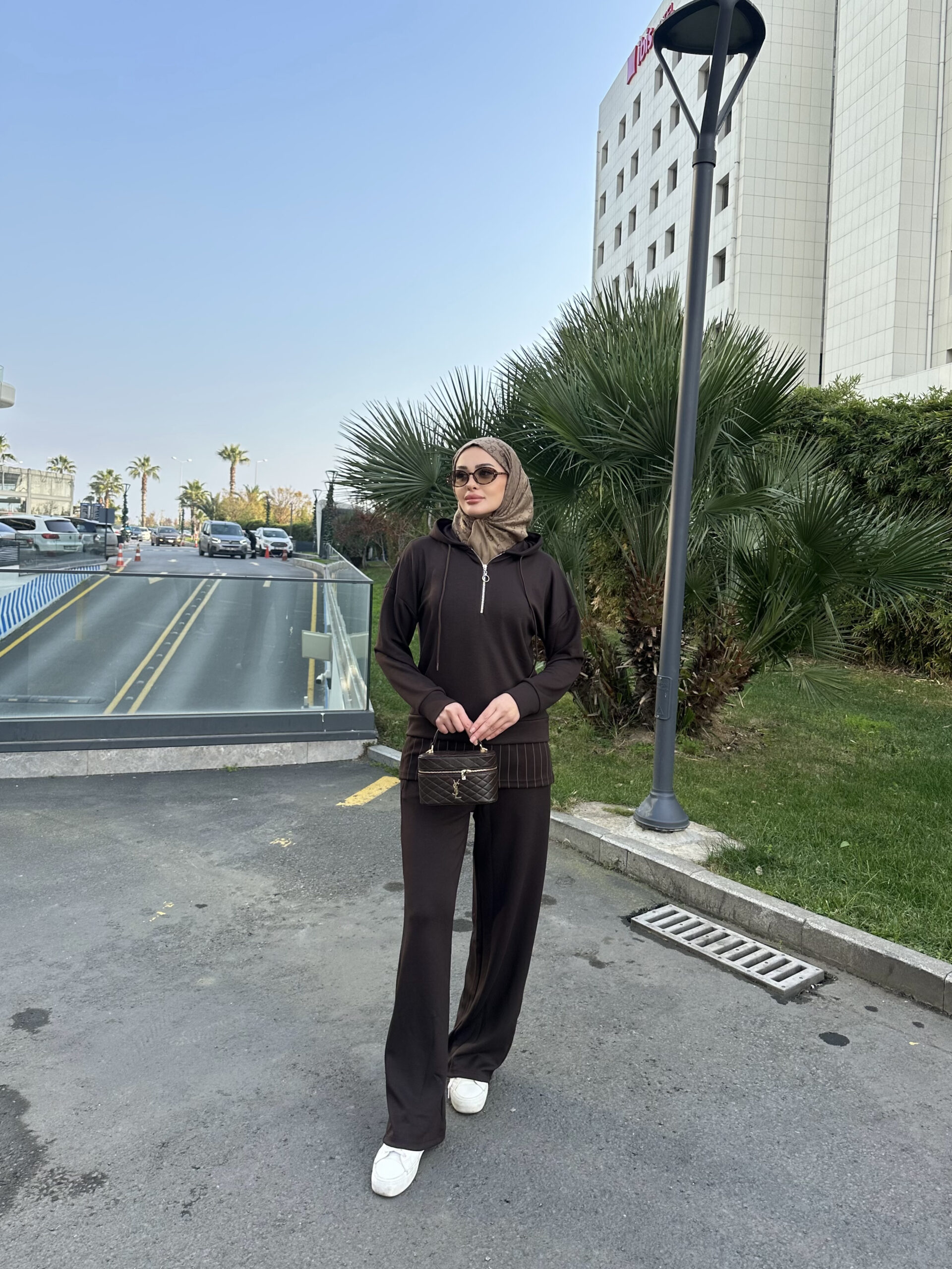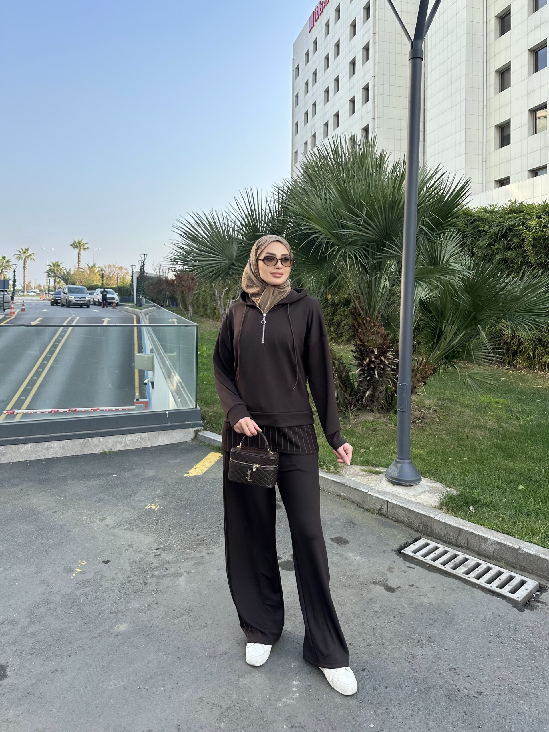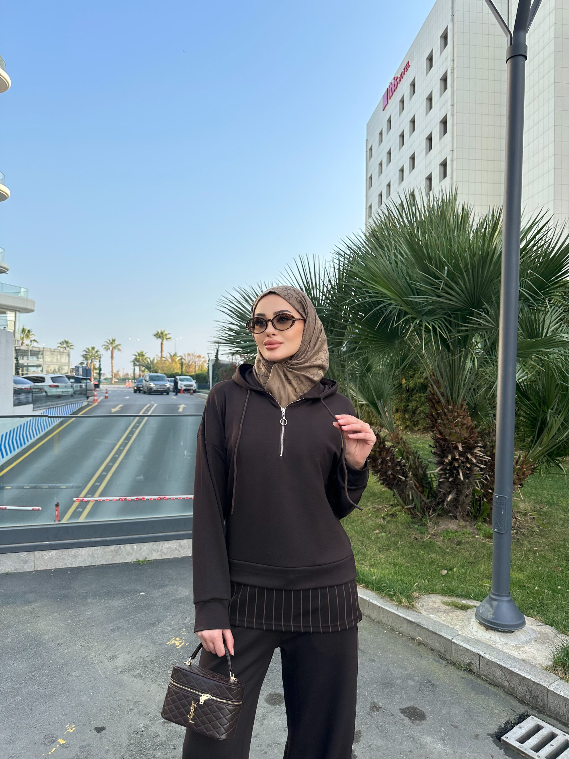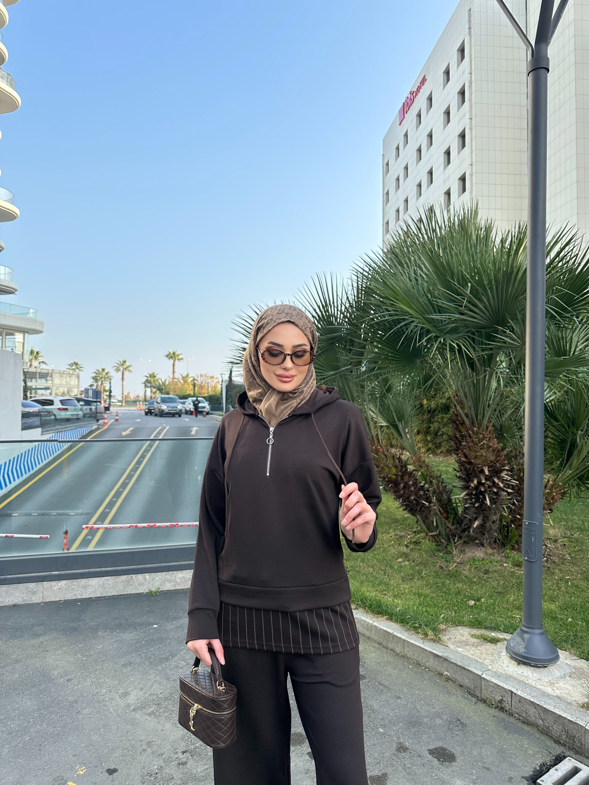 Premium Oysho Kumaş Çizgili İkili Takım – Kahve