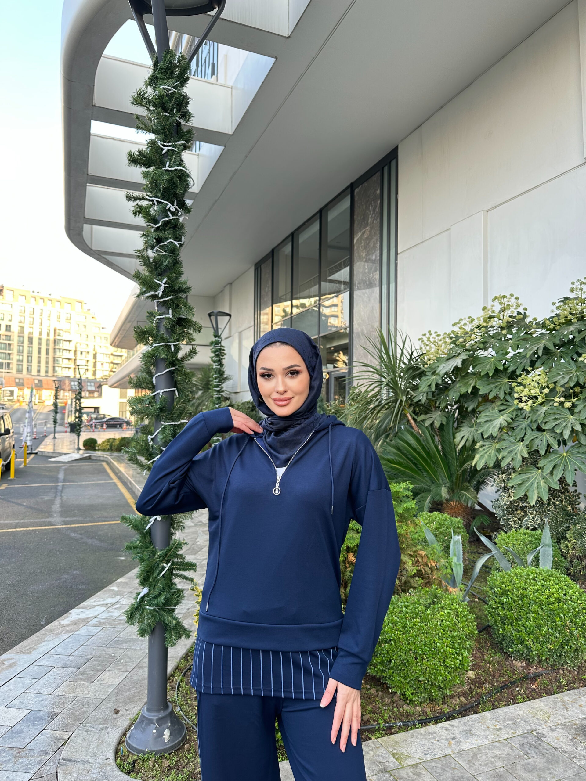 Premium Oysho Kumaş Çizgili İkili Takım – Lacivert