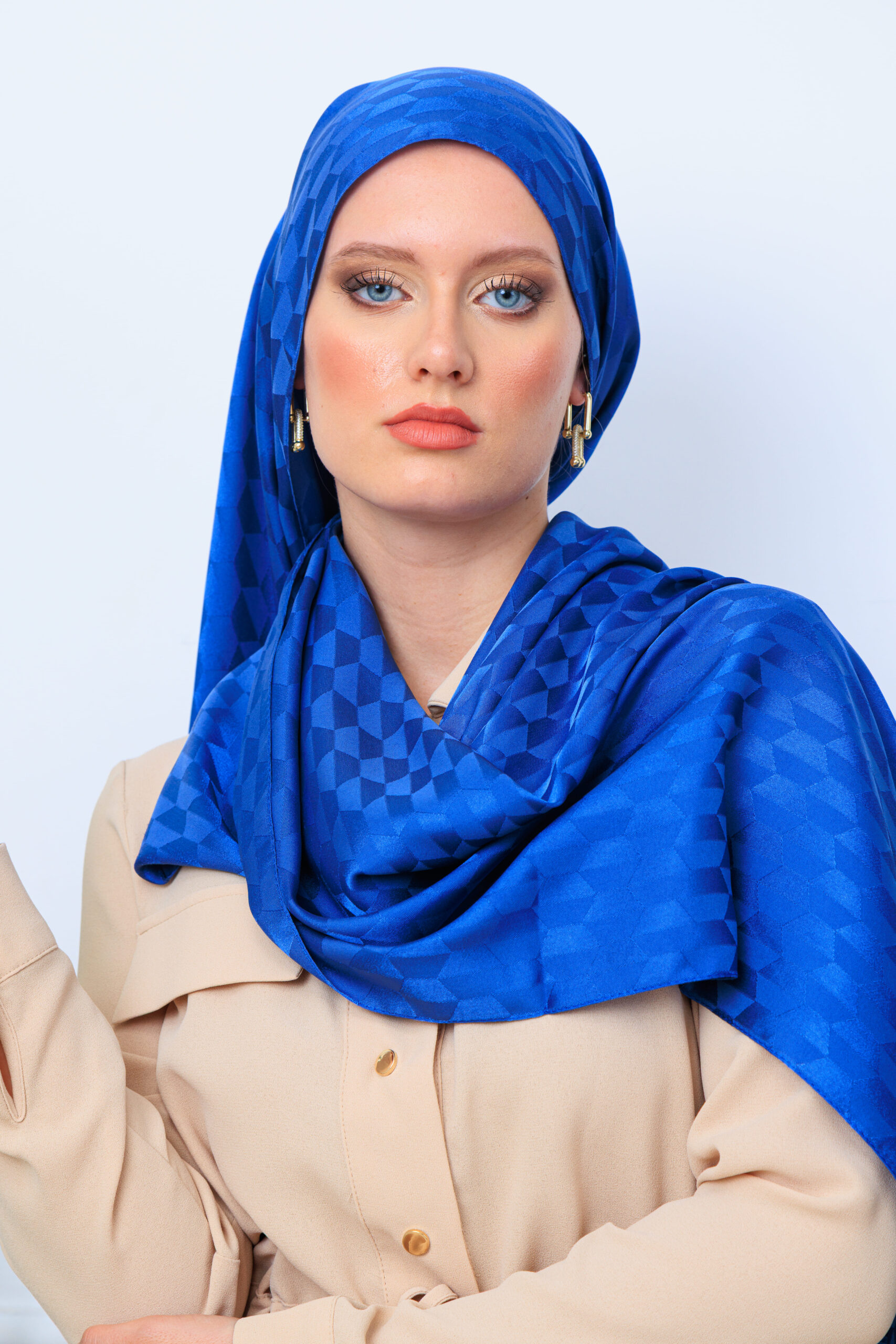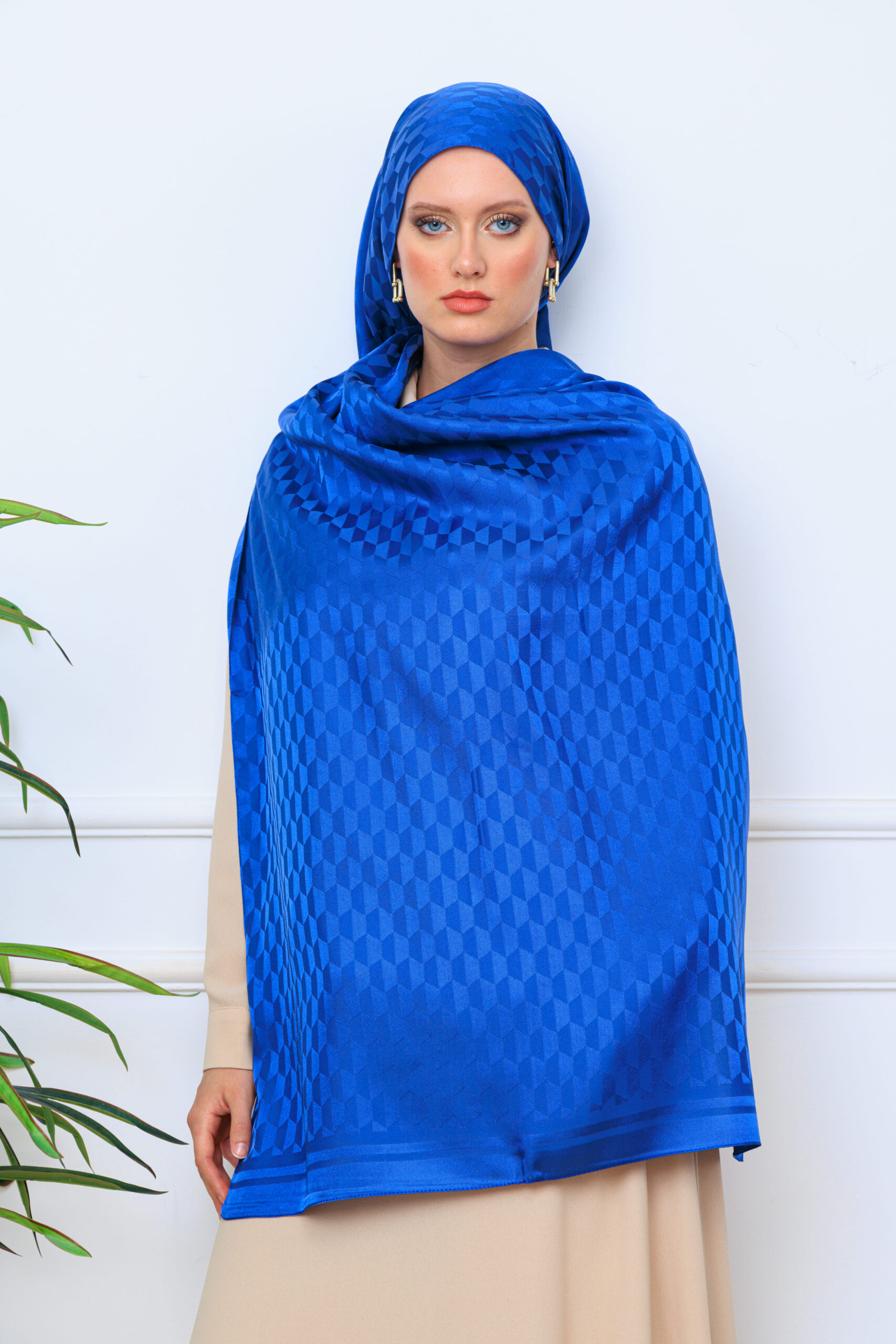 Qoza Desen İpeksi Jakar Şal – İndigo