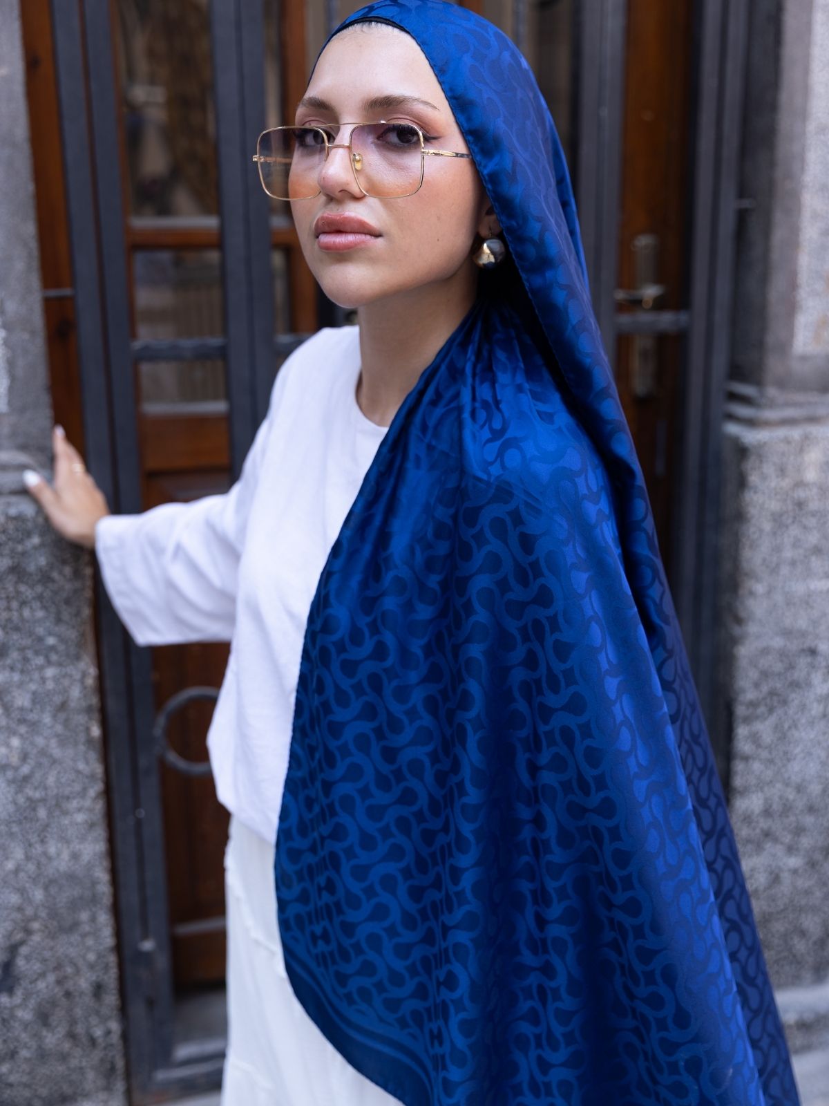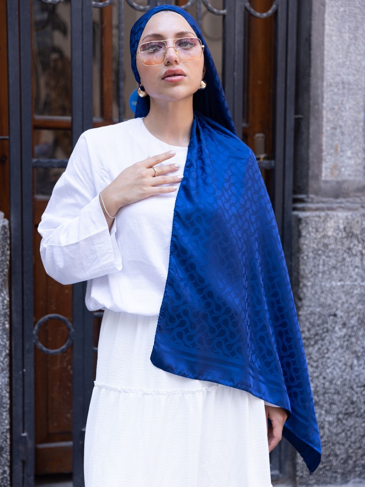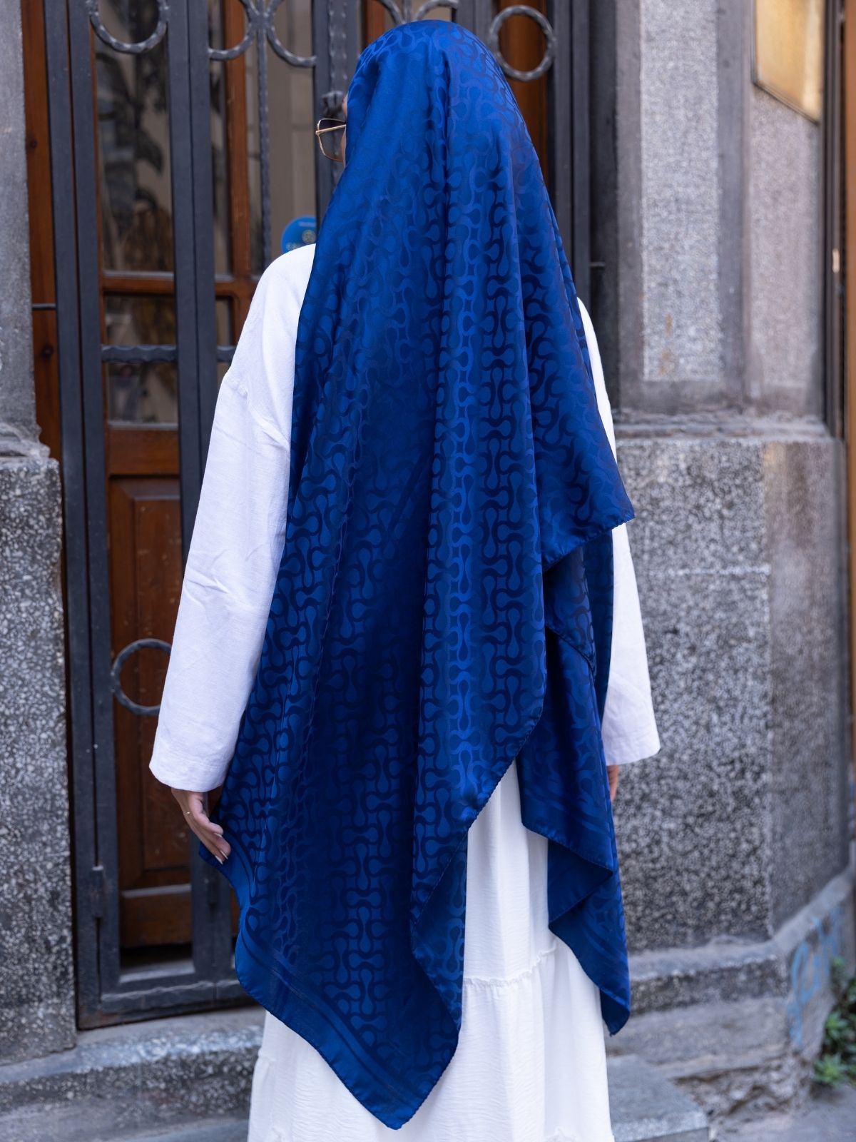 Ritim Desen Pamuk İpeksi Jakar Şal-53354-Lacivert