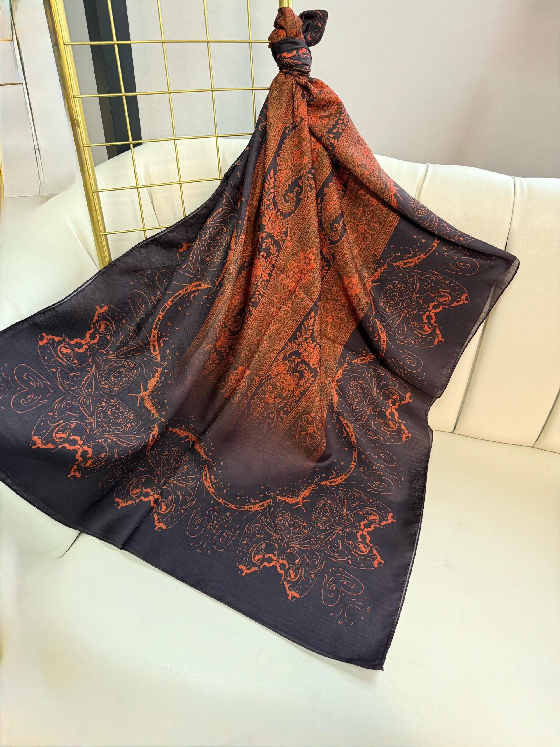 Sarmaşık Desen Pamuk İpek Şal -41200-Balkabağı