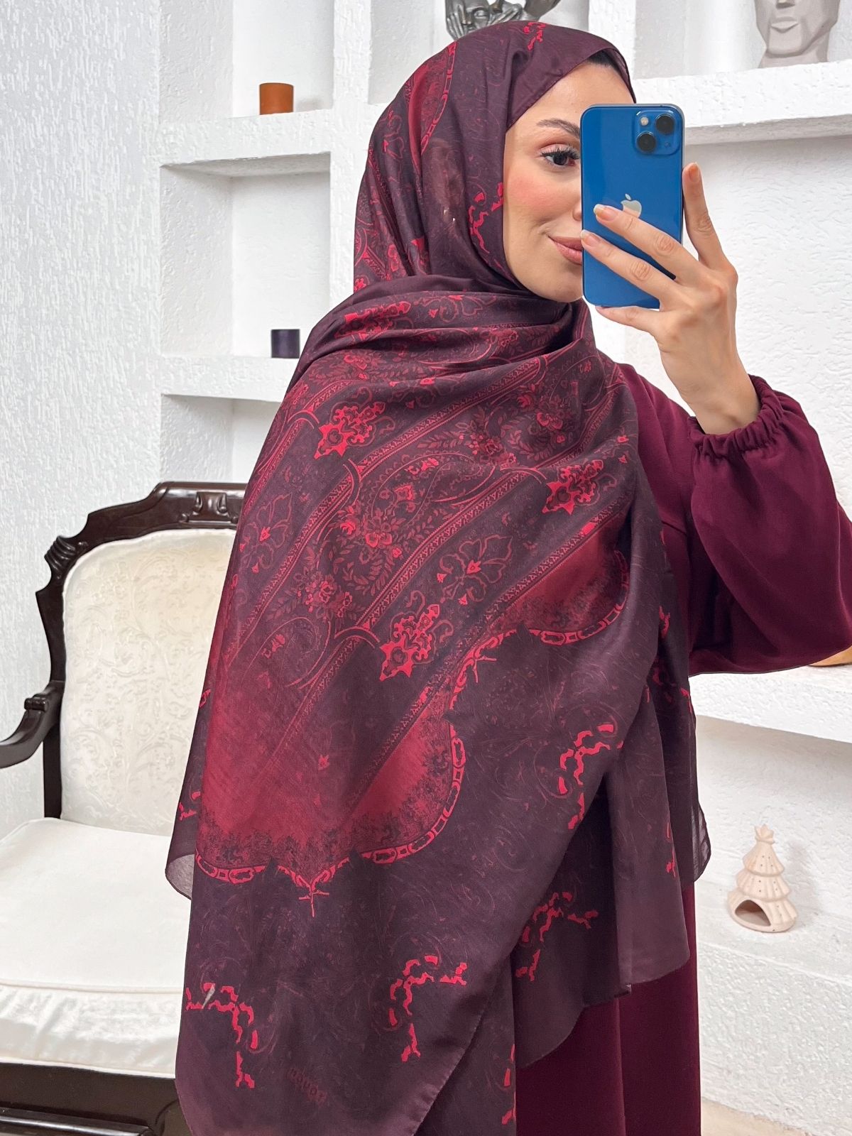 Sarmaşık Desen Pamuk İpek Şal -41200- Vişne Çürüğü adet