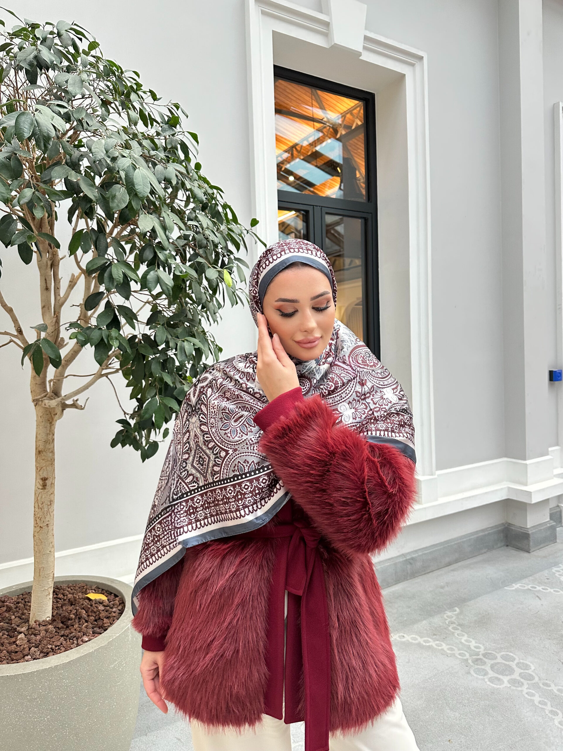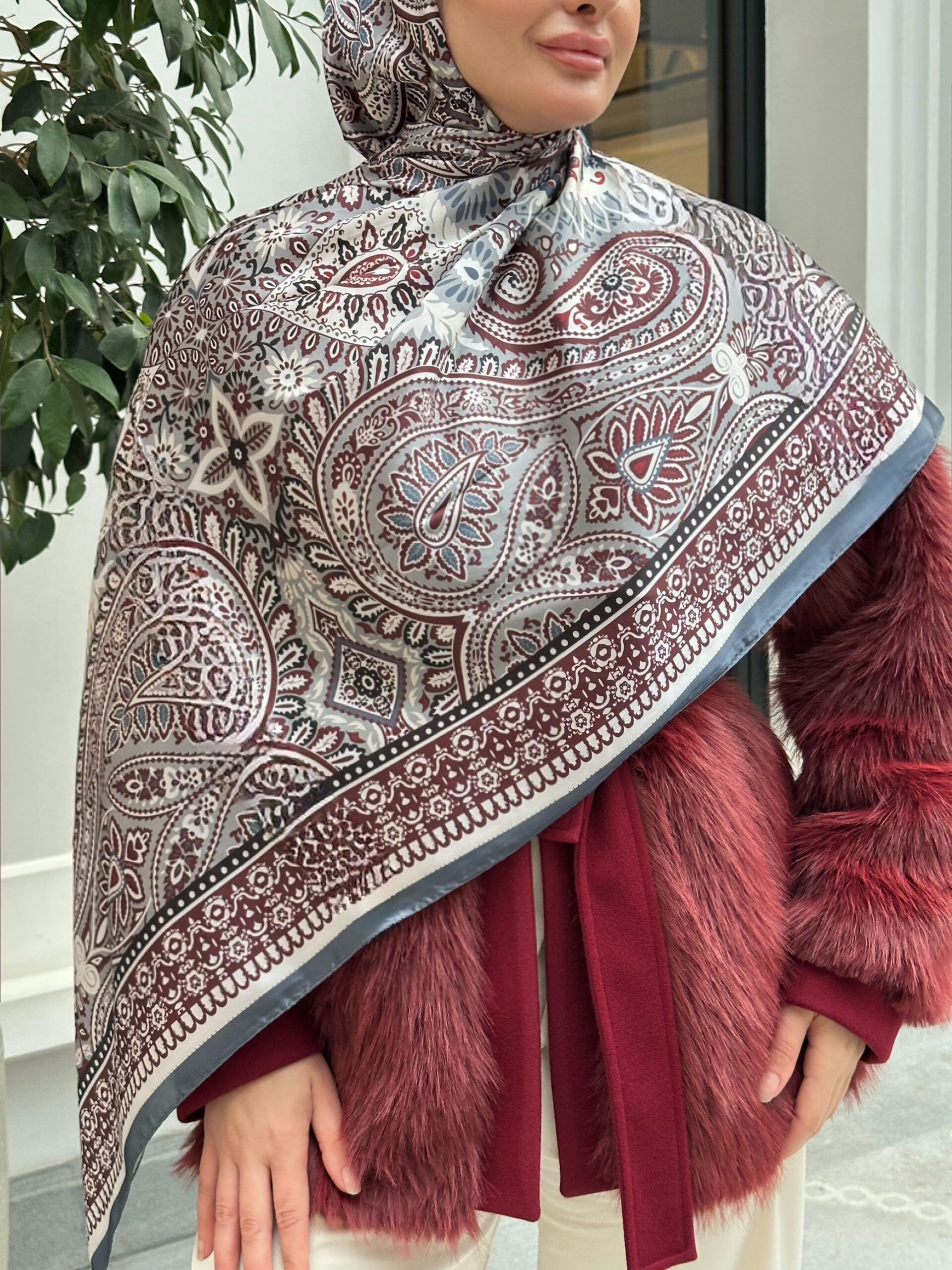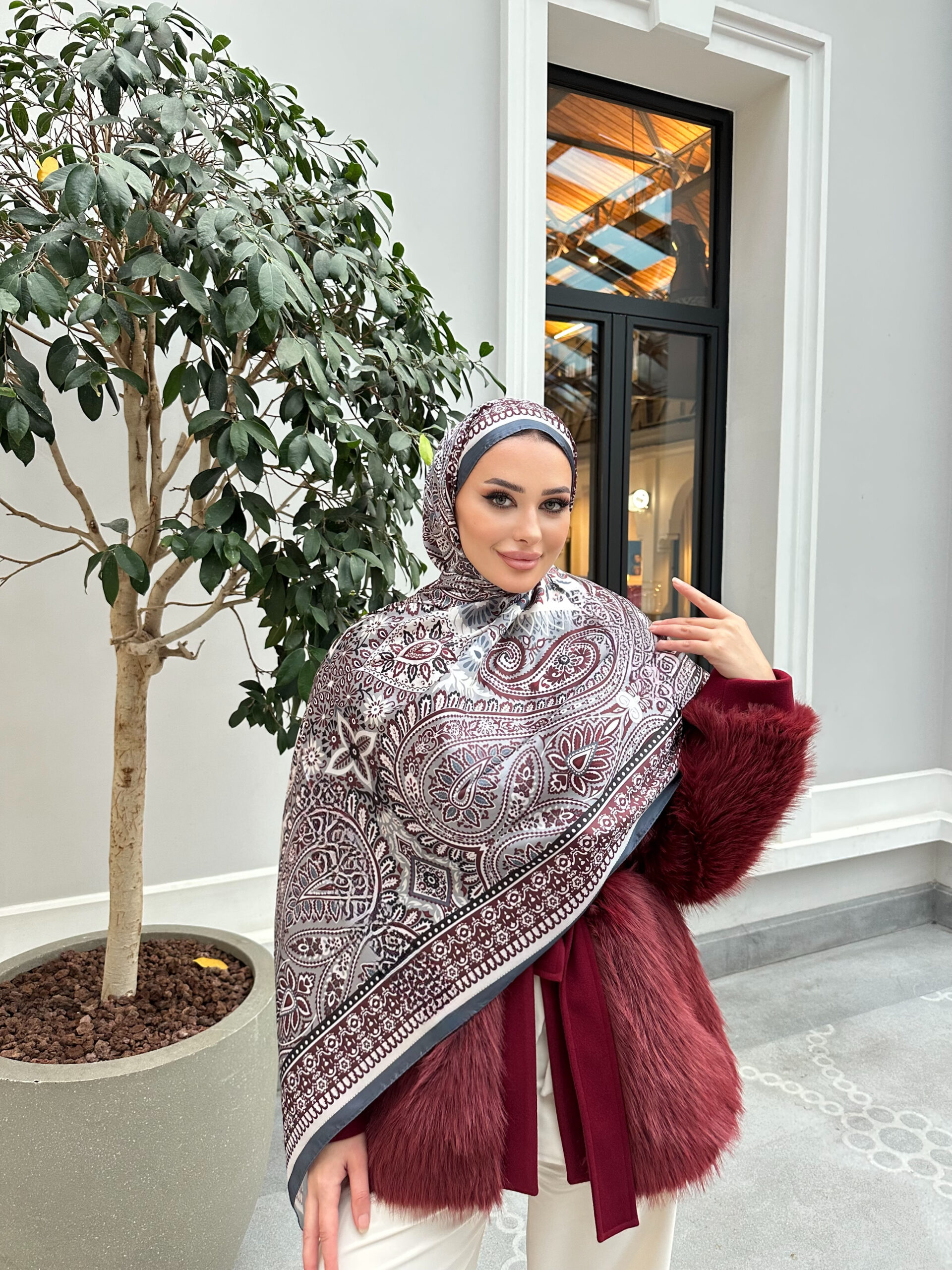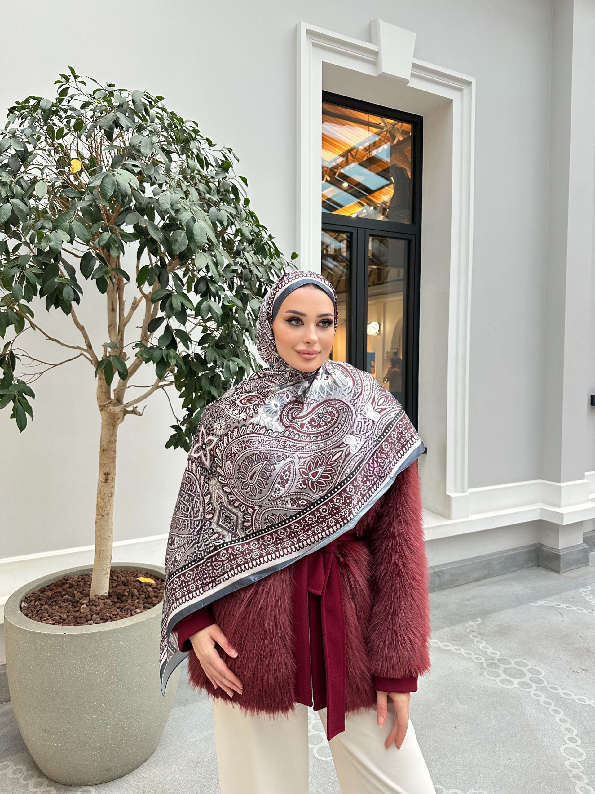 Şehzade Vual İpek Şal 10102 – Füme Bordo
