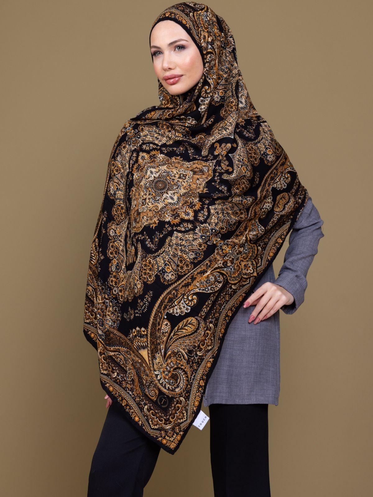 Touch İthal Etnik Desen Yün İpek Şal (ürün kutusuyla gelir)