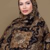 Siyah,Vizon Sedef Desenli Yün İpek Şal