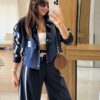 Twst Paraşüt Kol Detaylı Garnili İkili Takım- Lacivert
