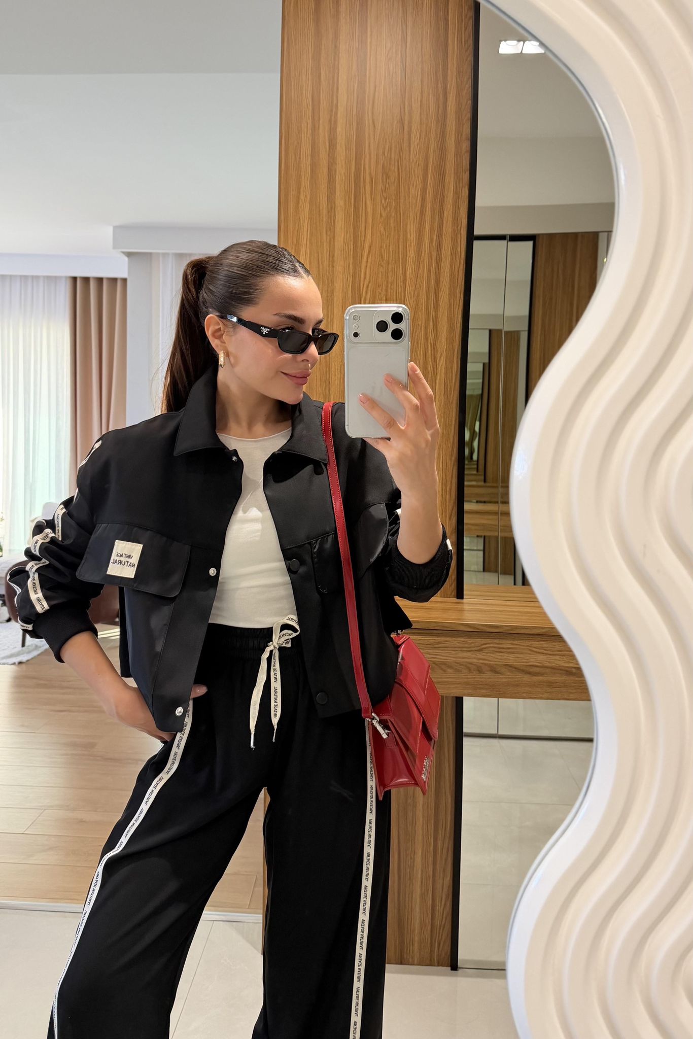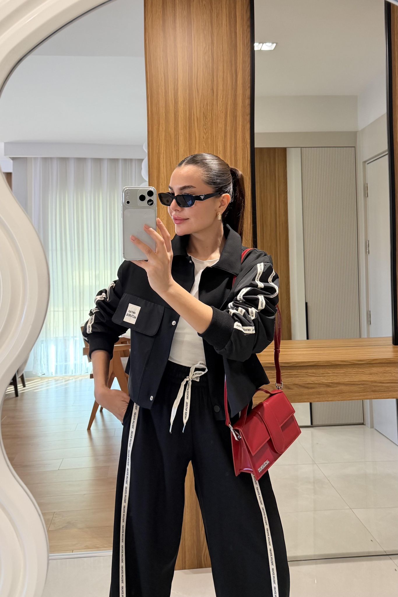 Twst Paraşüt Kol Detaylı Garnili İkili Takım- Siyah