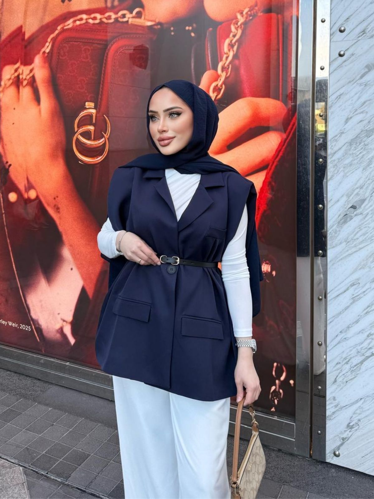 Vatka Detaylı Yelek (Kemer Hediyeli)  DŞ100298 - LacivertVatka Detaylı Yelek (Kemer Hediyeli) DŞ100298 – Lacivert