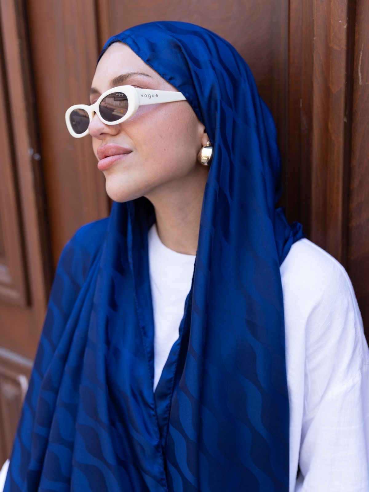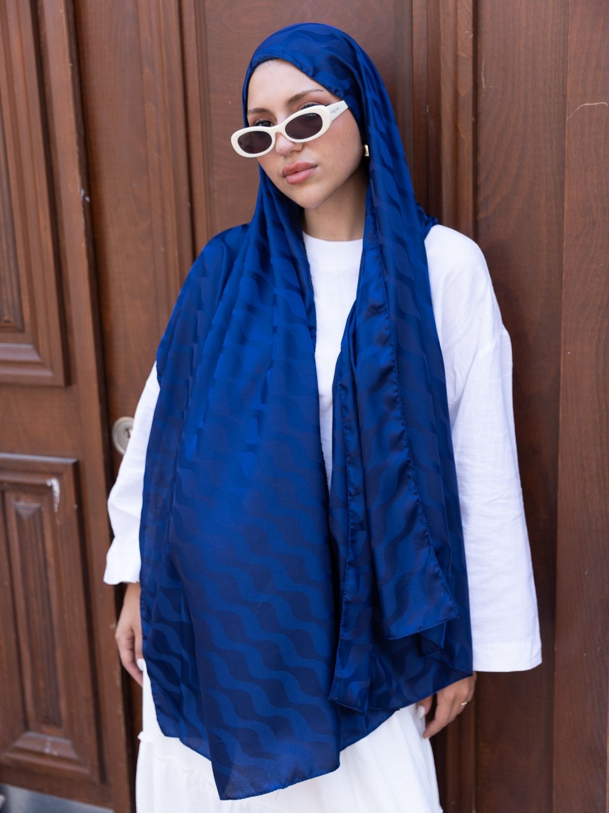Yansıma Desen Pamuk İpeksi Jakar Şal-53354-Lacivert