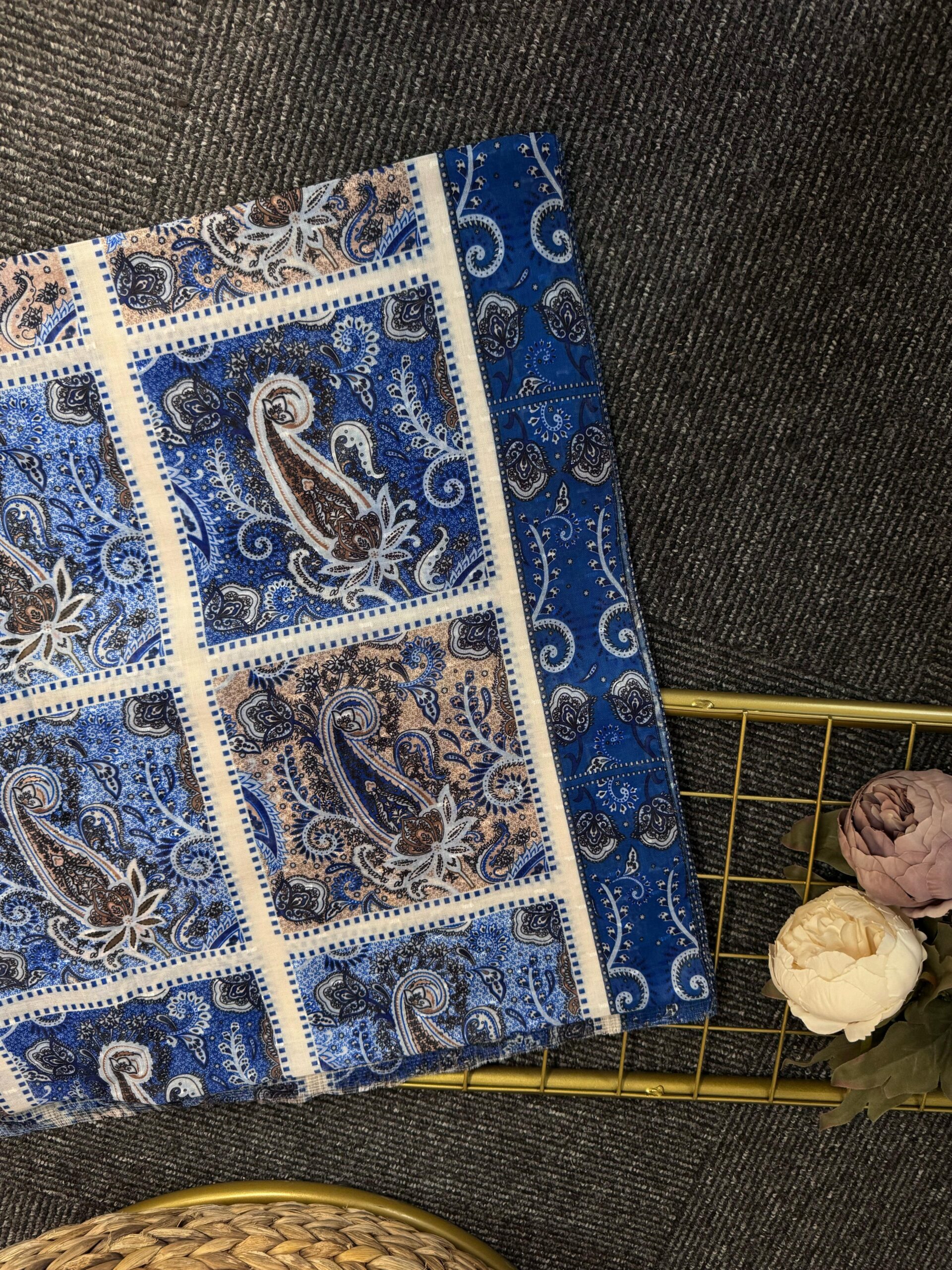Zemheri Motif Pamuk  Şal-665544-Gök MaviZemheri Motif Pamuk Şal-665544-Gök Mavi
