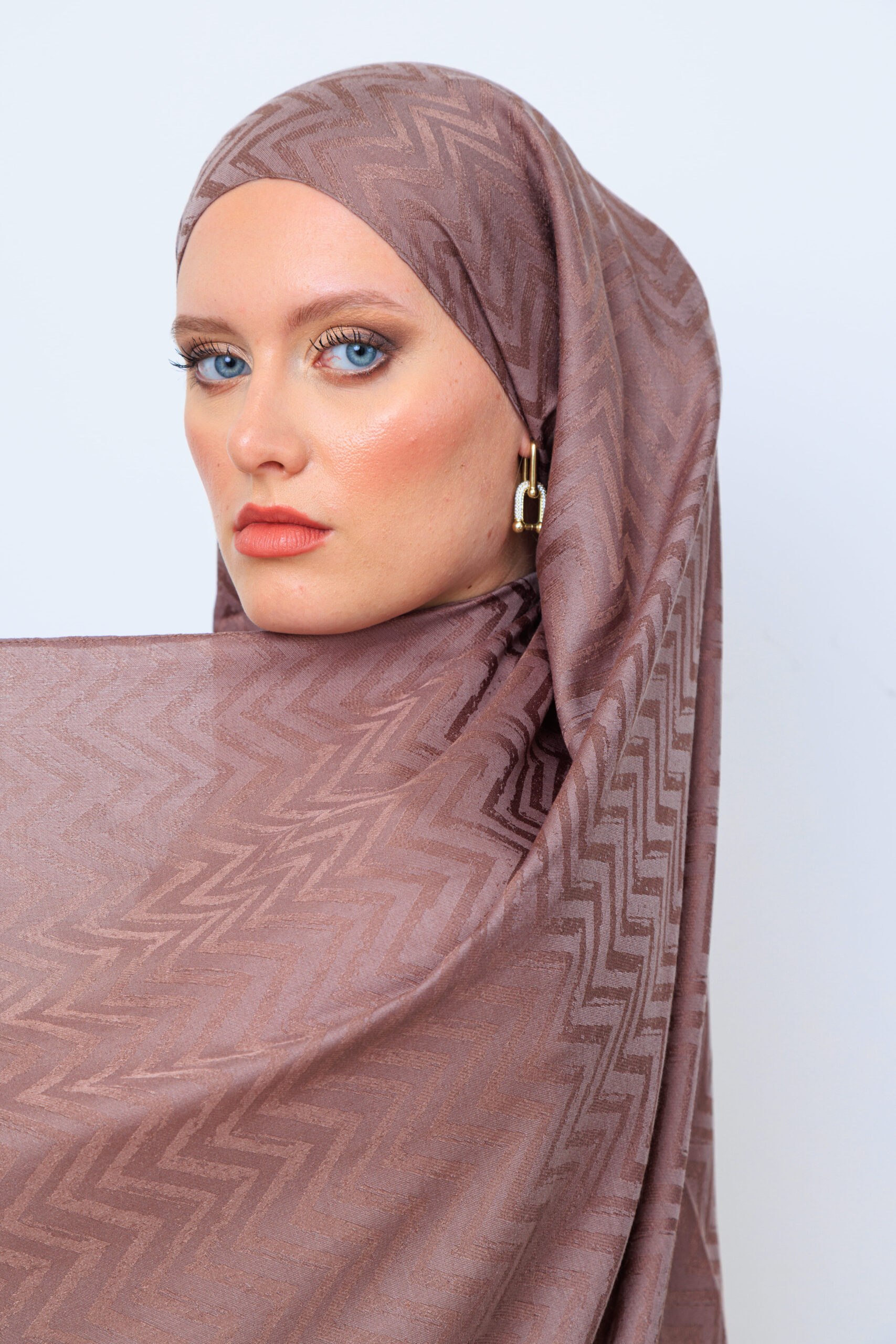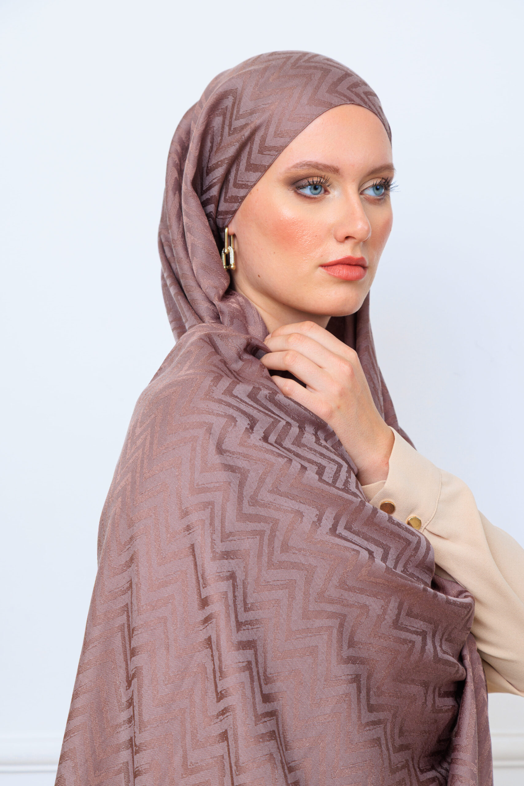 Zikzak desen pamuk Jakar Şal – Vizon